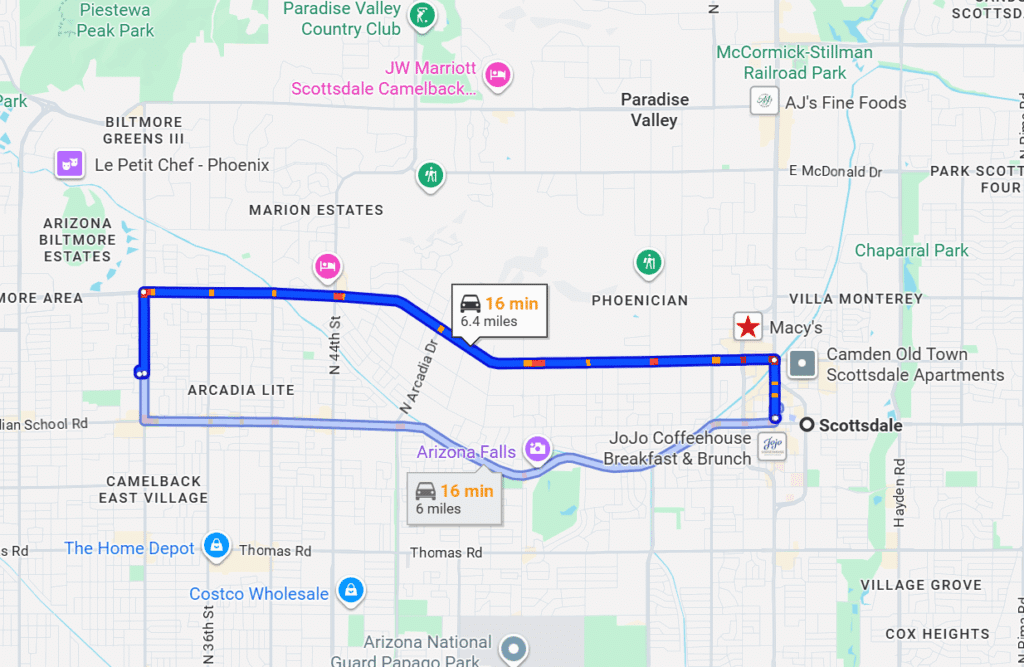 Directions from Scottsdale, AZ